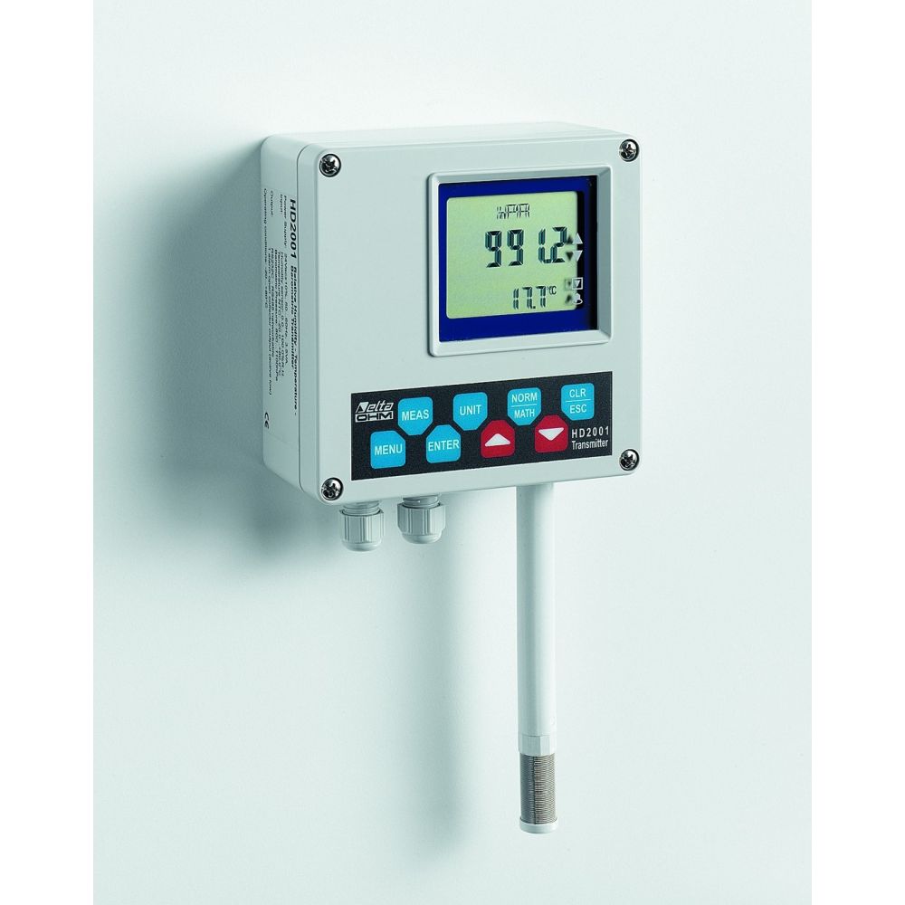 The devices of the HD2001 series…, according to the models, measure temperature, relative humidity, barometric pressure and air speed by hot-wire probes. Suitable for public areas, computer rooms and offices. Measuring range 0..100% RH; working temperature range of sensors: -20...+80 °C; electronics working temperature: -5...+60 °C.