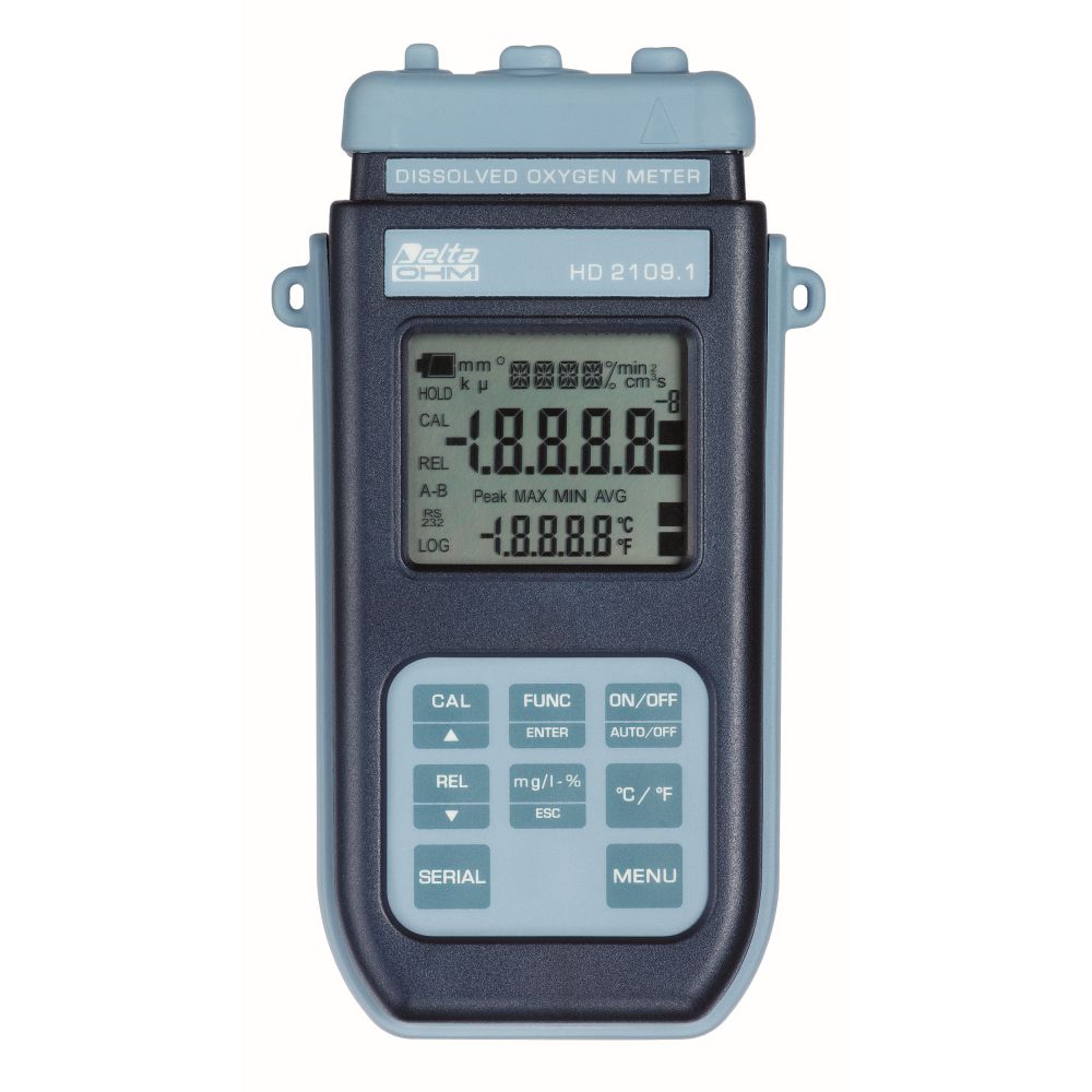 Oxygen meter-Thermometer measures dissolved oxygen, saturation index and temperature. Storage of maximum, minimum, average value, RS232 C output for data transfer in real time to a PC or printer. Functions: REL, HOLD and auto power off which can be disabled, IP 67 protection degree.