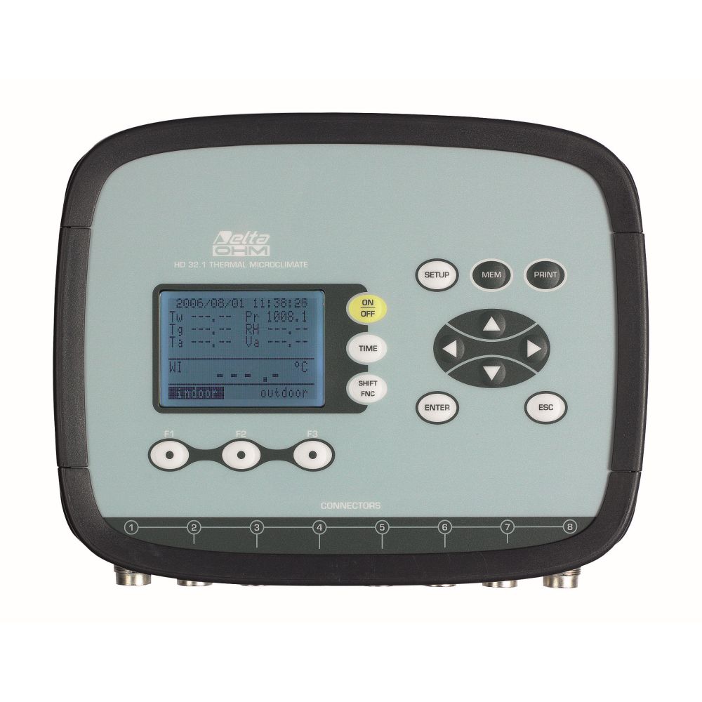 The HD32.1 Thermal Microclimate is a data logger multifunction instrument to measure the microclimate in moderate, hot, severe hot, cold environments and the measure of physical quantities. It is provided with 8 inputs for probes equipped with SICRAM module and a back-lighted graphic display. It has been designed for microclimate analysis in the workplace; the instrument is used to detect the necessary parameters to establish if a certain workspace is suitable to perform certain activities.